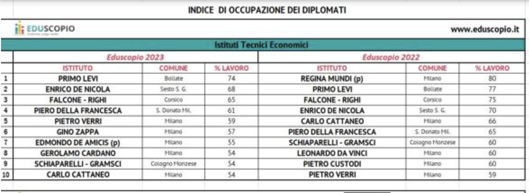 Fra gli istituti tecnici economici, sale al primo posto il Primo Levi di Bollate per gli sbocchi lavorativi.