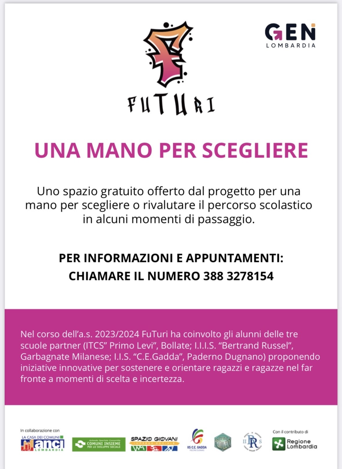 Si comunica che, anche se sono terminate le lezioni, proseguono le iniziative proposte dallo spazio FuTuri per l'orientamento scolastico degli studenti, anche per rivalutare il percorso scolastico intrapreso.