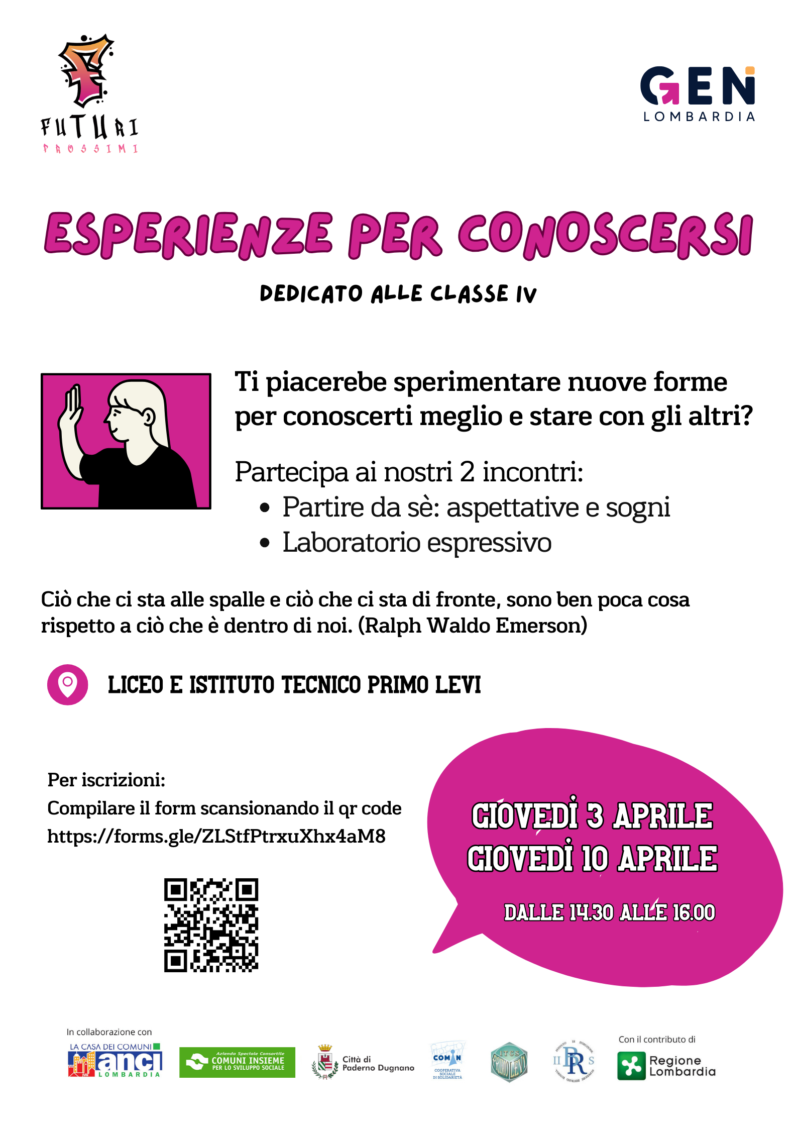 CLASSI QUARTE:    3, 10 aprile       Titolo dell'incontro:   "Esperienze per conoscersi"