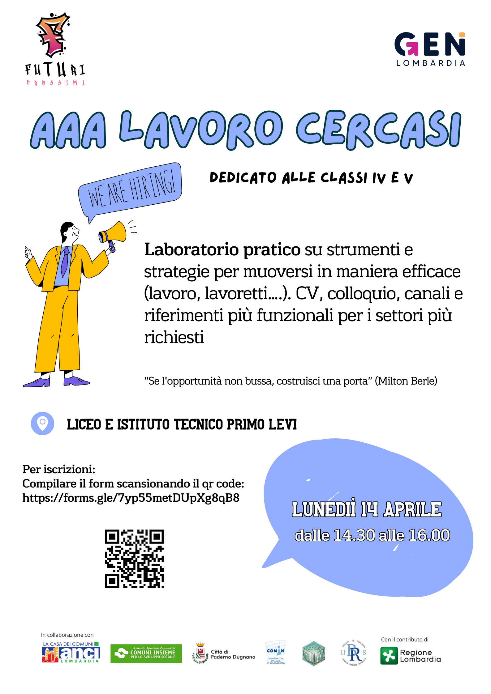 CLASSI QUARTE e QUINTE  14 aprile  Titolo dell'incontro:  "AAA LAVORO CERCASI"
