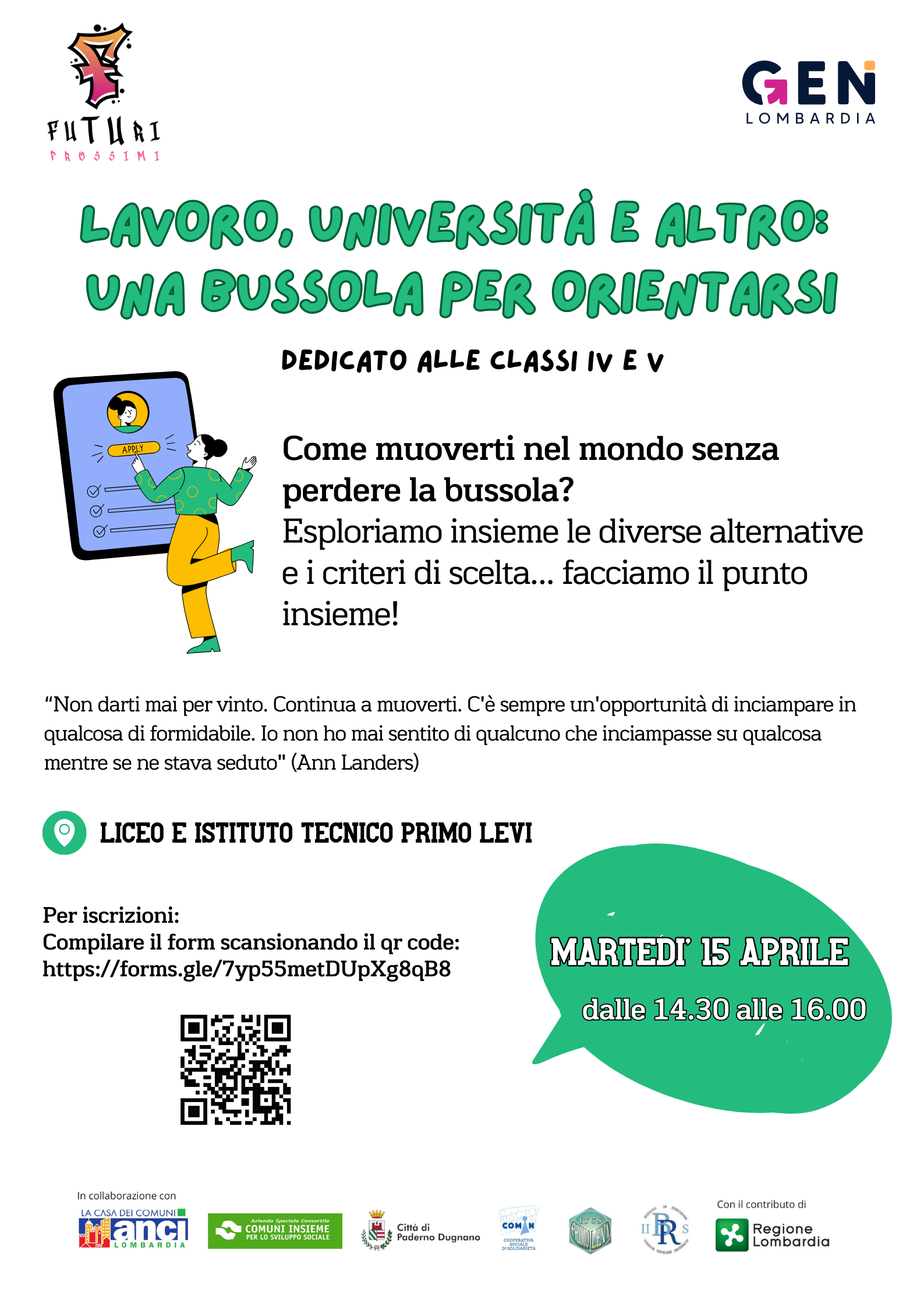 CLASSI QUARTE e QUINTE  15 aprile  Titolo dell'incontro:  "LAVORO, UNIVERSITA' E ALTRO UNA BUSSOLA PER ORIENTARSI"